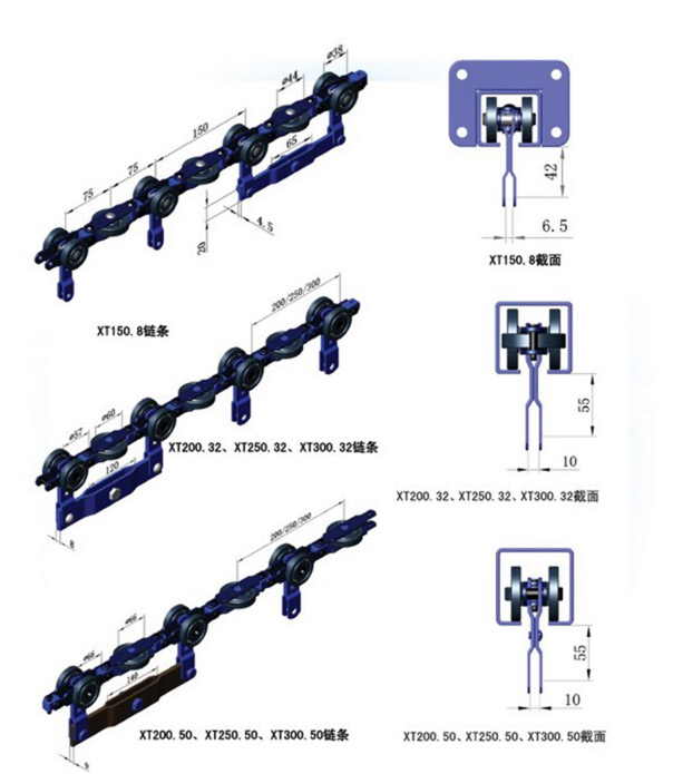 軌道采用開(kāi)口方鋼管制造,具有外型美觀(guān),運動(dòng)部件不外露等特點(diǎn),除了提高鏈條本身的防塵、防污性能外,同時(shí)也減小了因偶然事件造成的觸及、刮破鏈條等故障,加強了安全性。
