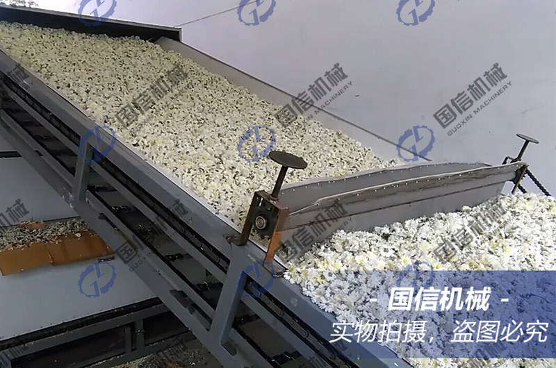 懷菊花的加工工藝一般就是烘干殺菌。新鮮采收的懷菊花可以將它們通過上料坡送入網(wǎng)帶式烘干機(jī)進(jìn)行連續(xù)烘干,鮮菊花從進(jìn)料口到烘干好出料,只需要3-4個(gè)小時(shí)的時(shí)間,采取傳統(tǒng)的干燥設(shè)備需要十個(gè)小時(shí),可以說這種帶式菊花烘干機(jī)大大提高了工作效率。 武陟縣是懷菊花的主產(chǎn)地,今年種植面積一萬(wàn)兩千畝,一般5公斤鮮懷菊花能出一公斤干菊花,產(chǎn)地價(jià)格每公斤干菊花100元左右。干菊花產(chǎn)量今年能夠達(dá)到兩千四百噸,產(chǎn)值達(dá)到一億九千萬(wàn)元,對(duì)農(nóng)業(yè)增效農(nóng)民增收起到很好地帶動(dòng)示范作用。