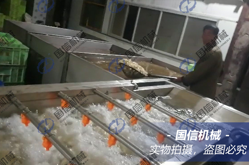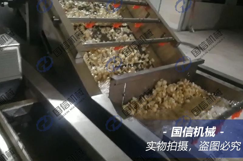 冷水漂洗:漂燙好的鱗片立刻投入氣泡清洗機(jī)的冷水中漂洗至冷,瀝干表面的水分。
