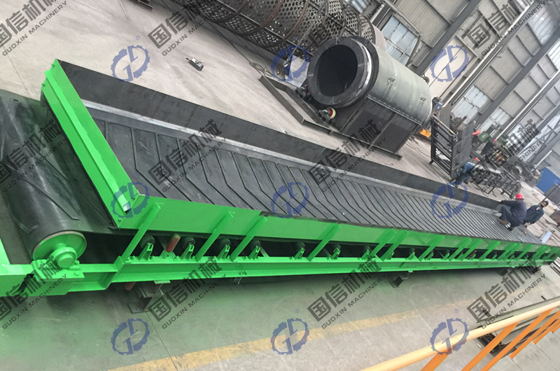 3、破袋之后的垃圾由皮帶輸送機送進滾筒篩分機中進行處理,篩選出有機物質,有機物經過懸掛式的磁選機設備篩選出鐵制物。