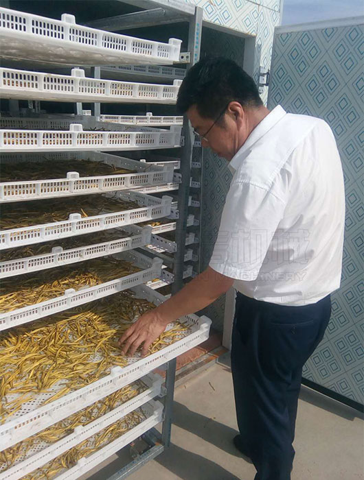 有了這臺(tái)黃花菜烘干機(jī)器,大大提高了工人的工作效率,不受天氣的影響,一次生產(chǎn)15噸,口感和顏色都比人工要好,深受百姓歡迎。最重要的是,這臺(tái)黃花菜烘干機(jī)的操作流程也非常的簡(jiǎn)單,不僅不需要大量的勞動(dòng)力,而且效率大幅度提升。