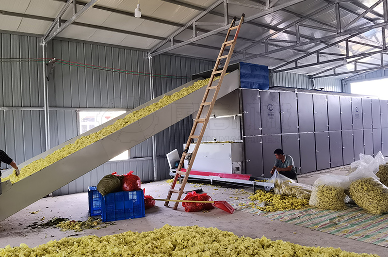 網(wǎng)帶式干燥設(shè)備設(shè)有冷卻層和震動輸料裝置,出料溫度低,有利于及時包裝;箱體外設(shè)有活動門,便于清理;還另配自動出料風(fēng)冷裝袋設(shè)施,節(jié)省人工,方便快捷。