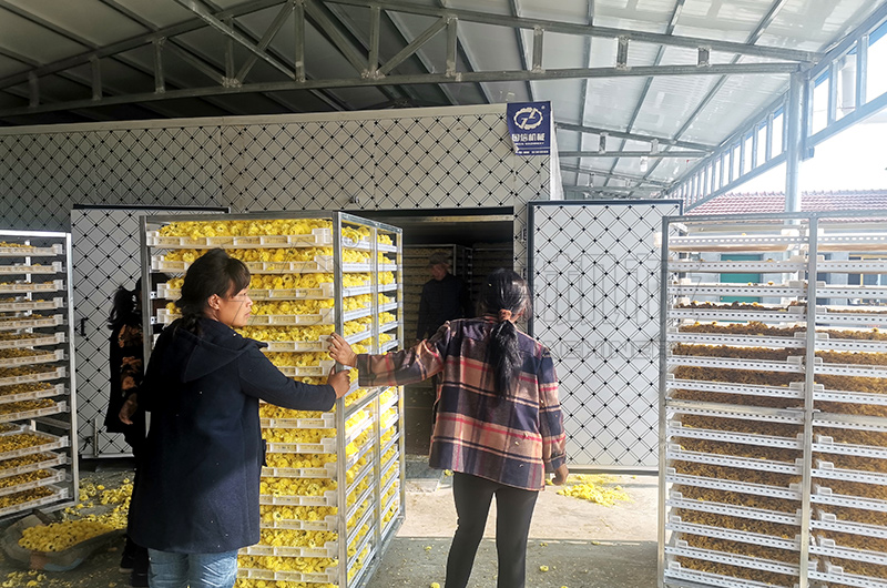 導(dǎo)讀:鮮菊花含水率我們按80%,要烘干到含水率13%,通過(guò)公式:干花重量=濕花重量×(1-烘干前含水率)/(1-烘干后含水率)可以計(jì)算出一百斤藥用菊花烘干后剩23斤左右,而鮮菊花4.35斤烘干后為一斤干菊花。