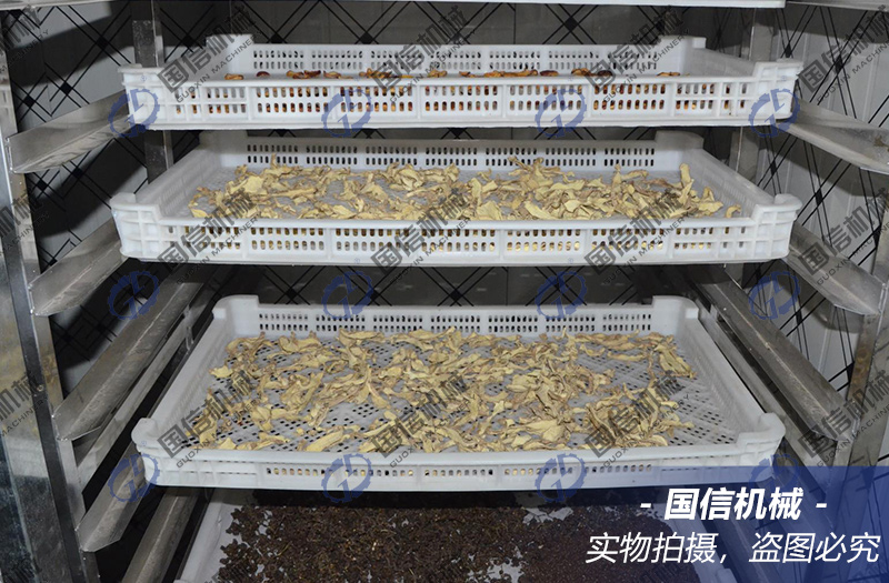 生姜烘干機(jī)烘干室內(nèi)烘干,溫度以65-70℃為宜。烘時(shí)溫度應(yīng)逐漸上升,免得淀粉糖化、變質(zhì)發(fā)黏。