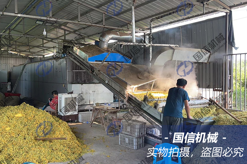 大型金銀花全自動網(wǎng)帶式烘干機,是我們廠家根據(jù)用戶大產(chǎn)量金銀花烘干的產(chǎn)量需求設計研發(fā)的,可以實現(xiàn)單臺日烘干處理鮮金銀花兩噸到幾十噸的加工需求,實現(xiàn)金銀花的自動化大批量連續(xù)式烘干作業(yè),非常適合大面積金銀花種植客戶、農(nóng)業(yè)合作社、以及大型藥材加工廠使用。