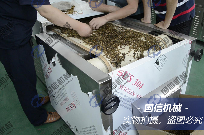 黑水虻微波烘干機(jī)整個(gè)過(guò)程無(wú)任何污染物產(chǎn)生,相比其他方式的烘干去水節(jié)能30%以上,符合國(guó)家環(huán)保要求,設(shè)備屬于定做設(shè)備,可根據(jù)產(chǎn)量大小來(lái)定做,另外還可以配備干燥時(shí)水汽冷凝回收裝置。國(guó)信機(jī)械研發(fā)生產(chǎn)的新型環(huán)保節(jié)能黑水虻烘干設(shè)備,可用于黑水虻、黃粉蟲(chóng)、蠶蛹、蠅蛆等物料的快速烘干干燥,干燥后的黑水虻、黃粉蟲(chóng)等物料色澤漂亮。烘干干燥后含水量低,膨化效果明顯,容易磨粉,有效成分得到較好保留。