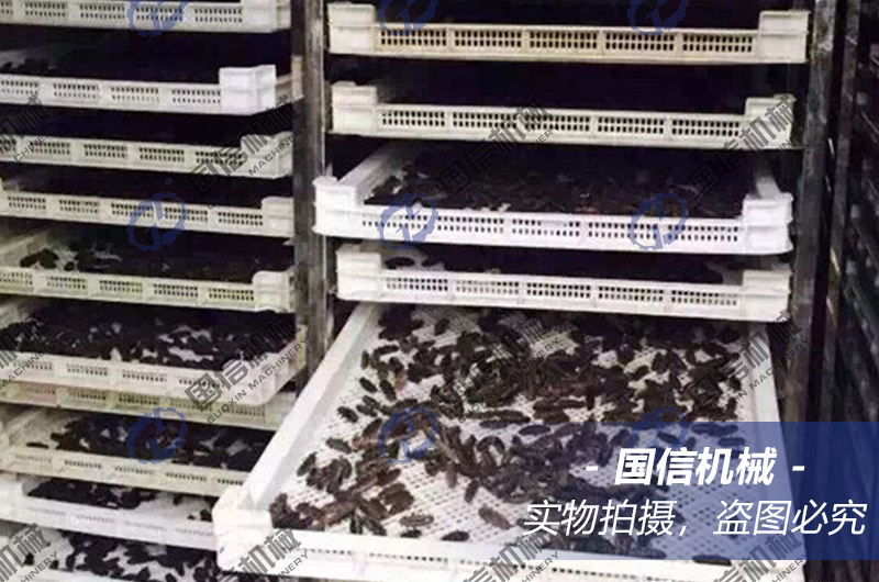 3、干燥:通過海參烘干機將海參烘干。傳統(tǒng)的做法是通過日曬等方法干燥,原始又不潔凈,通過先進技術(shù)的引進,使得淡干海參含雜質(zhì)更少,烘干效果更明顯,更易儲藏,且衛(wèi)生健康。
