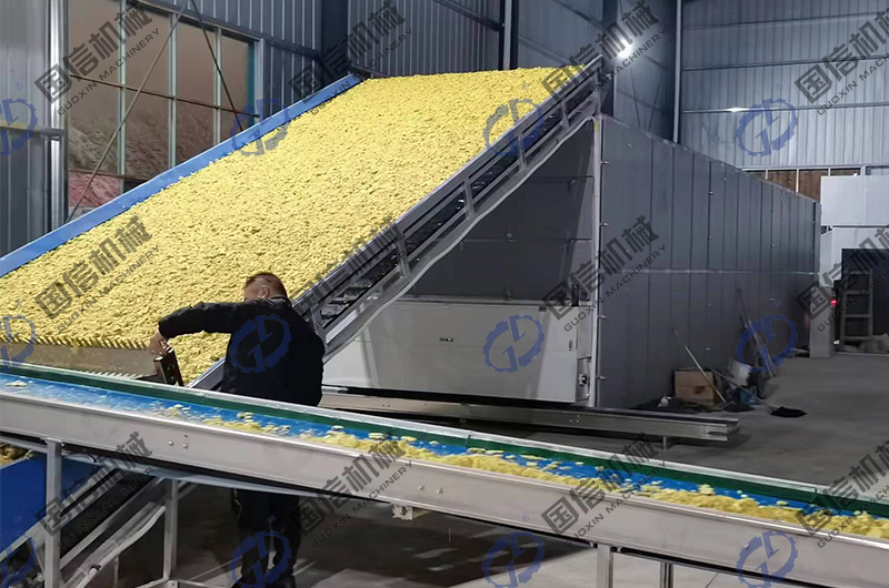 該設(shè)備是根據(jù)客戶要求采用熱交換爐(煤或生物質(zhì)顆粒等)做熱源,干燥周期短,產(chǎn)量大,是批量干燥生姜片的理想設(shè)備。為方便大家選購,我們國(guó)信機(jī)械廠家就帶大家來了解一下姜片烘干加工生產(chǎn)線設(shè)備的選型步驟。