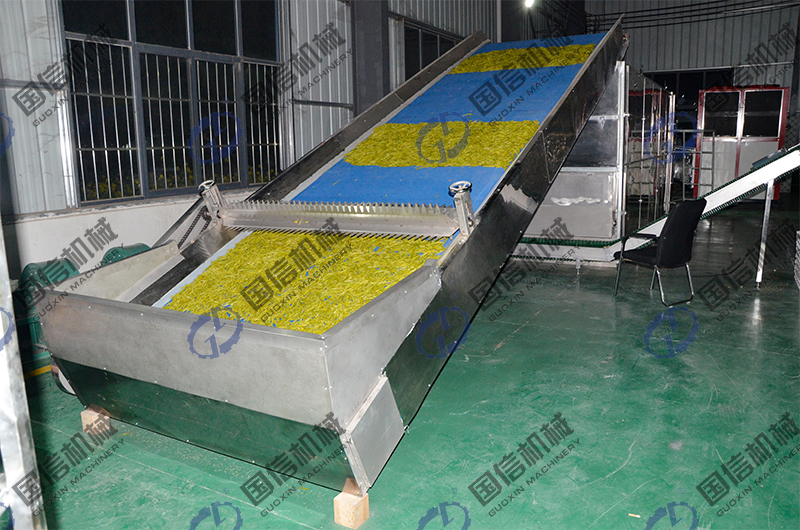 黃花菜全自動(dòng)殺青烘干流水線設(shè)備具有規(guī)?;?、大批量、連續(xù)式加工生產(chǎn)的效果,一次開(kāi)機(jī)就能夠?qū)Σ烧蟮乃悬S花菜實(shí)現(xiàn)干制加工,產(chǎn)量非常大時(shí),還能夠24小時(shí)連續(xù)生產(chǎn),具有閃蒸、殺青、烘干的一體化功能,日處理可達(dá)萬(wàn)斤至十幾萬(wàn)斤。使用這種新型黃花菜殺青烘干一體機(jī)整個(gè)加工過(guò)程,只需1~2人即可完成,改變了傳統(tǒng)烘干勞動(dòng)力強(qiáng)度大的缺點(diǎn),干燥時(shí)間也縮短了3分之二以上,也大大的節(jié)約了成本,熱源方面可以選擇燃煤、燃生物質(zhì)顆粒、天然氣、蒸汽、電(空氣能熱泵)等類型,然后搭配國(guó)信廠家的換熱系統(tǒng),置換出純凈的熱風(fēng)對(duì)黃花菜干制加工,不會(huì)對(duì)其品質(zhì)造成污染,再加上智能化控制系統(tǒng),可以提升烘干品質(zhì),是集中產(chǎn)業(yè)化黃花菜烘干的理想設(shè)備。