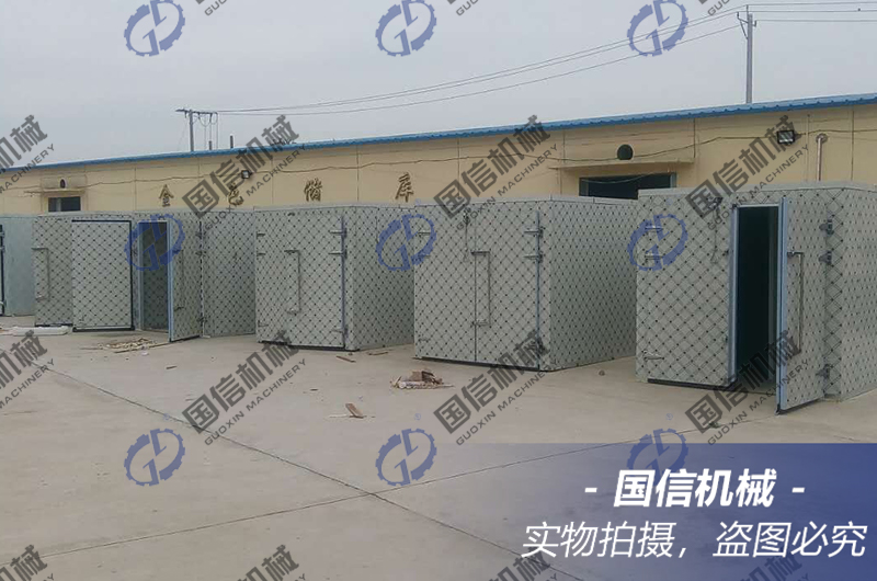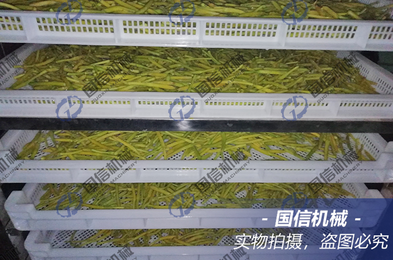 大型黃花菜烘干房?jī)?nèi)部可以放置15個(gè)推車,共360個(gè)托盤,日烘干處理鮮黃花菜片5噸左右。