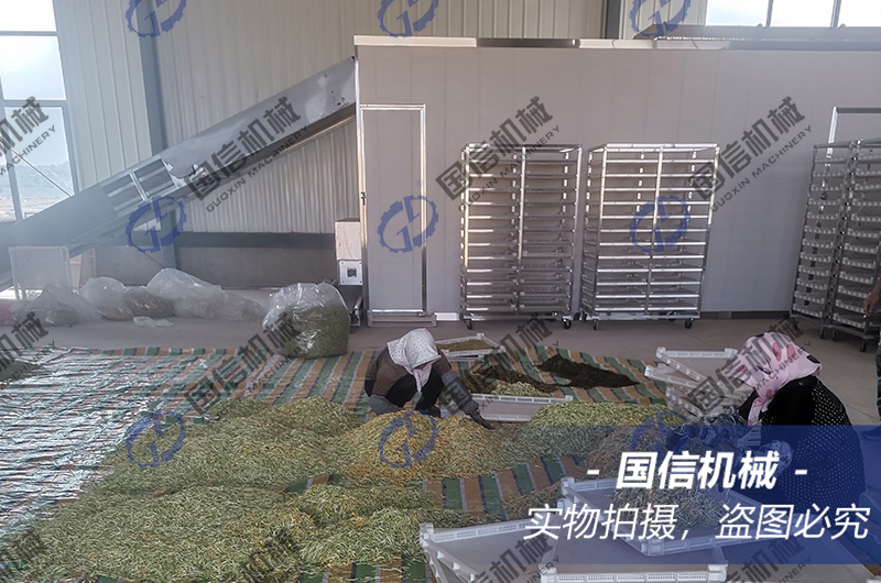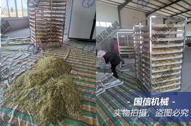 金銀花空氣能烘干房使用的是空氣能熱泵烘干機做熱源,高保溫性的聚氨酯做烘干板房,耐高溫高濕環(huán)境的品牌軸流風(fēng)機做循環(huán)系統(tǒng),精準(zhǔn)的推車和托盤成為了金銀花烘干的主要放置裝置,由于金銀花烘干加工的產(chǎn)量不同,所用的熱泵主機、板房大小、風(fēng)機數(shù)量和推車托盤尺寸也不盡相同,可日烘干處理鮮金銀花兩百公斤到5噸以左右,采用的是下出風(fēng),上回風(fēng),平行送風(fēng)的方式,內(nèi)部可放置4到15輛小推車,96到360個托盤,托盤材質(zhì)有PP塑料和不銹鋼等多種選擇。金銀花熱泵烘干機采用了智能化的控制系統(tǒng),實現(xiàn)了金銀花烘干所需的溫度、濕度、時長、階段等等參數(shù)控制,保證了金銀花烘干始終處在合理環(huán)境下,烘干品質(zhì)得到了有效保證,而且熱泵烘干不產(chǎn)生任何的廢棄污染物,是環(huán)保鼓勵的金銀花烘干設(shè)備,部分地區(qū)還可獲得補貼,如果您有需要,可以隨時與我們聯(lián)系。聯(lián)系電話:18639572831