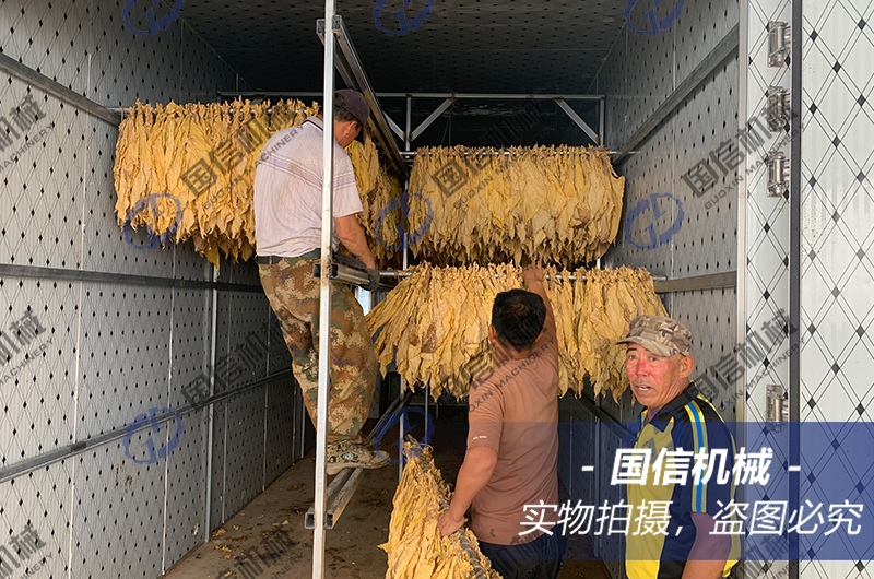 二、完成變黃溫度控制在40~42℃以下,保持濕球溫度35~37℃,達到煙葉基本全黃,充分凋萎塌架,主脈發(fā)軟,確保煙葉轉(zhuǎn)化充分,形成更多的香氣基礎物質(zhì)。所以,在41 ~ 42℃要適當延長時間,使煙葉達到黃片青筋微帶青,葉片充分凋萎塌架,主脈發(fā)軟。