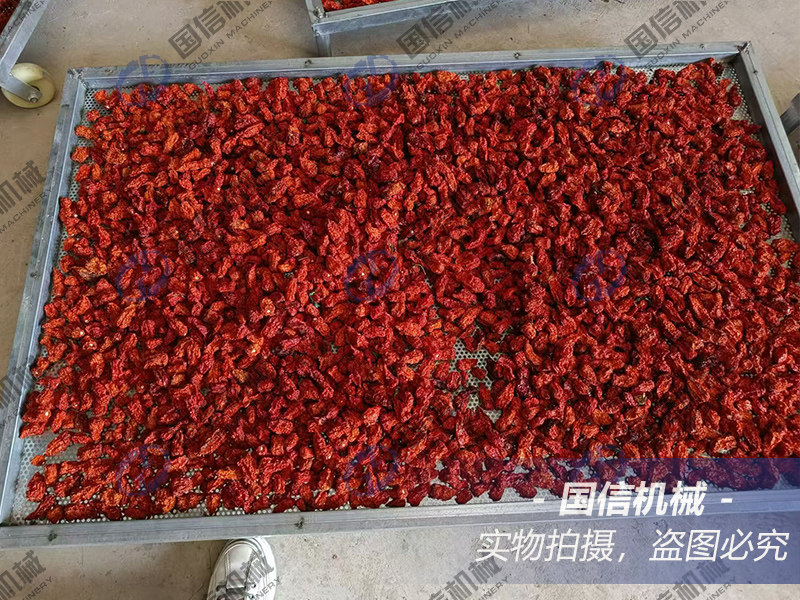 1.堆放厚度:在使用烘干機(jī)烘干辣椒的過(guò)程中,要注意辣椒的堆放厚度,建議辣椒的堆放厚度為20-25毫米左右即可。辣椒堆放太?。弘m然透氣性好,風(fēng)阻小,有利于熱交換,但會(huì)導(dǎo)致辣椒與熱空氣的接觸時(shí)間縮短,從而導(dǎo)致熱利用率降低。辣椒堆放太厚:則會(huì)使熱風(fēng)流通阻力增大,熱空氣無(wú)法穿透物層,導(dǎo)致辣椒烘干效果較差甚至出現(xiàn)無(wú)法烘干的問(wèn)題。