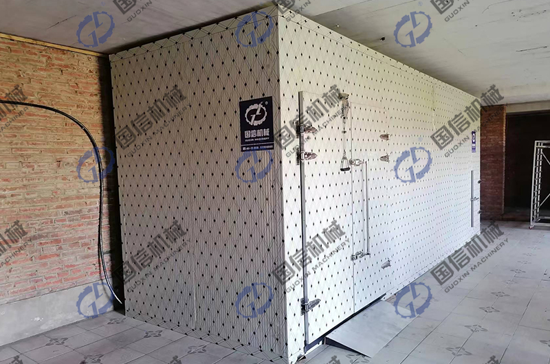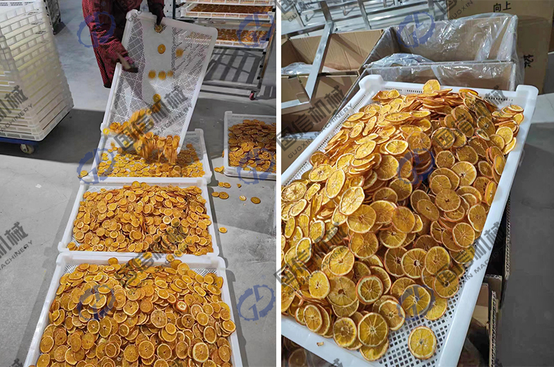 首先把橙子進行清洗切片,均勻的擺放在托盤上,放入烘干房內(nèi)即可;烘干階段,設定橙子烘干所需的溫度濕度等參數(shù),一般溫度在45-60度之間,時間大約5小時以上,按照你所需要的軟硬程度,設定具體的控制時間即可。使用這種橙子烘干工藝,對橙子進行烘干,可以很好的保證橙子干自身的口感,也解決了橙子產(chǎn)量過剩的問題,有效的增加了橙子自身的經(jīng)濟價值,這也是我們國信機械廠家眾多水果烘干加工的一種,其實我們在為客戶提供烘干設備的同時,也會對物料干制加工進行整體的烘干解決方案提供,通過近二十年的發(fā)展,我們積累了大量的水果烘干加工經(jīng)驗,如果你有相關需求,可與我們聯(lián)系,進行相關的經(jīng)驗交流。