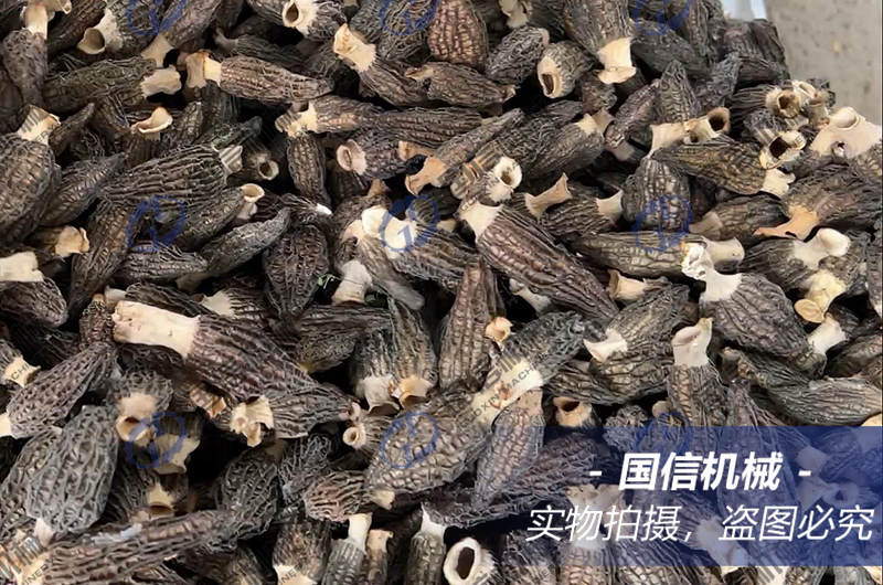 5)、回軟 羊肚菌烘干完成后,不要急于馬上裝袋,可在空氣中靜置10-20分鐘,使其表面稍微回軟,否則干硬的羊肚菌在裝袋過程中發(fā)生脆斷而被損壞。